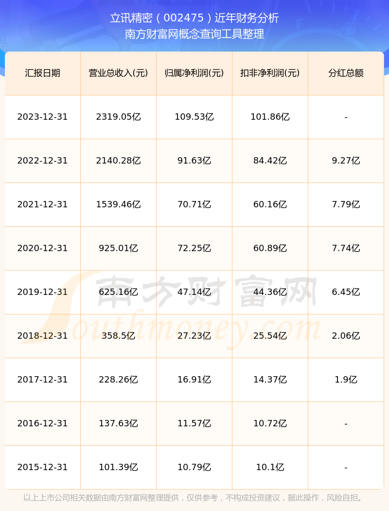2023年公司总营收2319.05亿,同比增长8.35%;净利润109.53亿,同比增长19.53%;销售毛利率11.58%。