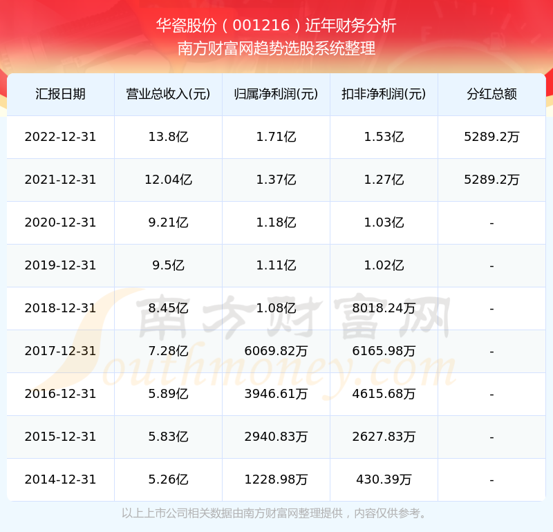 华瓷股份最新一次公布的分红方案:10派2.1元。