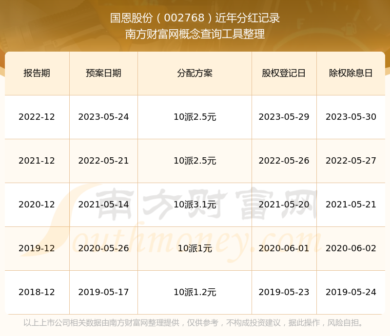国恩股份最新一次公布的分红方案:10派2.5元。