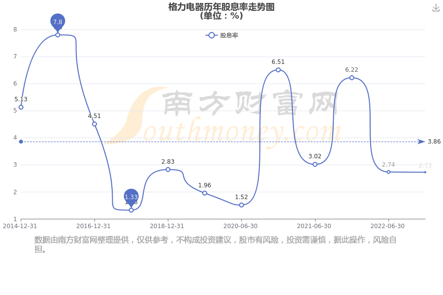 近年格力电器年度股息率走势如下图: