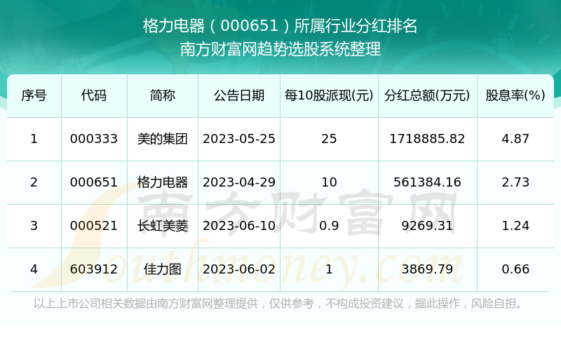 二、格力电器000651行业分红排名