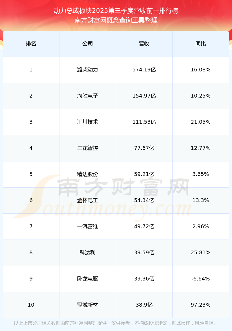 按照南方财富网概念查询工具统计,该股所属板块为动力总成板块,该板块共有40只股票,华依科技2025第三季度营收在该板块中排名为第40名,该板块2025第三季度营收排名前十的股票如下表: