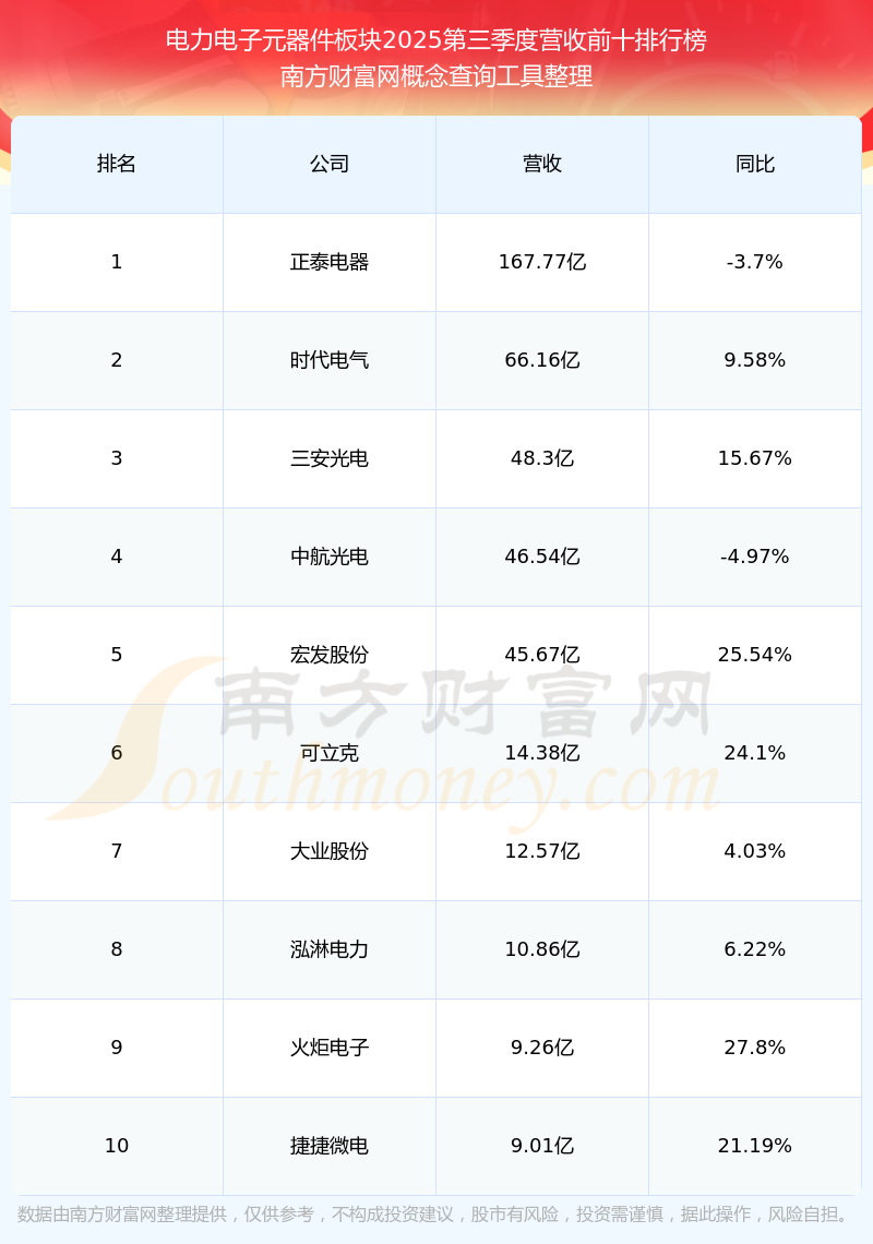 按照南方财富网概念查询工具统计,该股所属板块为电力电子元器件板块,该板块共有32只股票,华丰科技2025第三季度营收在该板块中排名为第32名,该板块2025第三季度营收排名前十的股票如下表:
