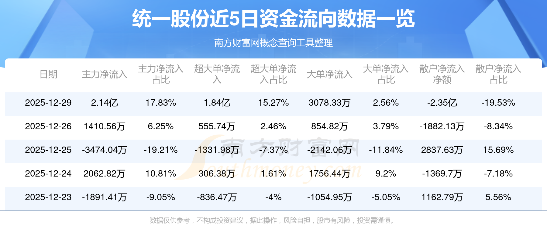 12月30日13时36分,统一股份(600506)今年来上涨22.18%,最新股价报29.120元,当日最高价为29.12元,最低达26.03元,换手率26.51%,成交额13.96亿元。