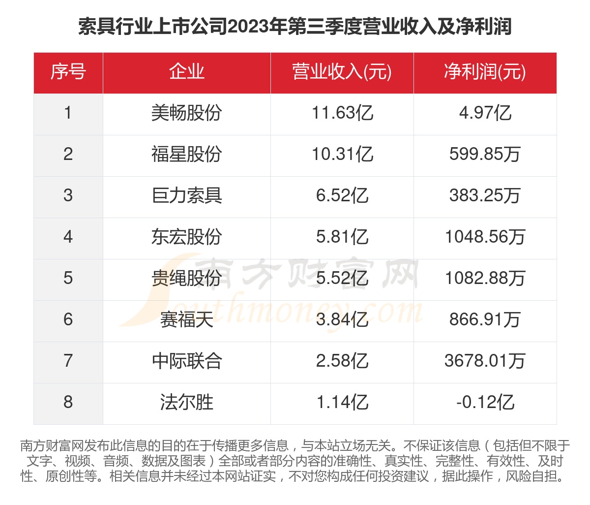 本文统计了A股8家索具行业上市公司的2023年前三季度的营业收入、净利润,2023年第三季度的营业收入、净利润,以及最新的市值情况。
