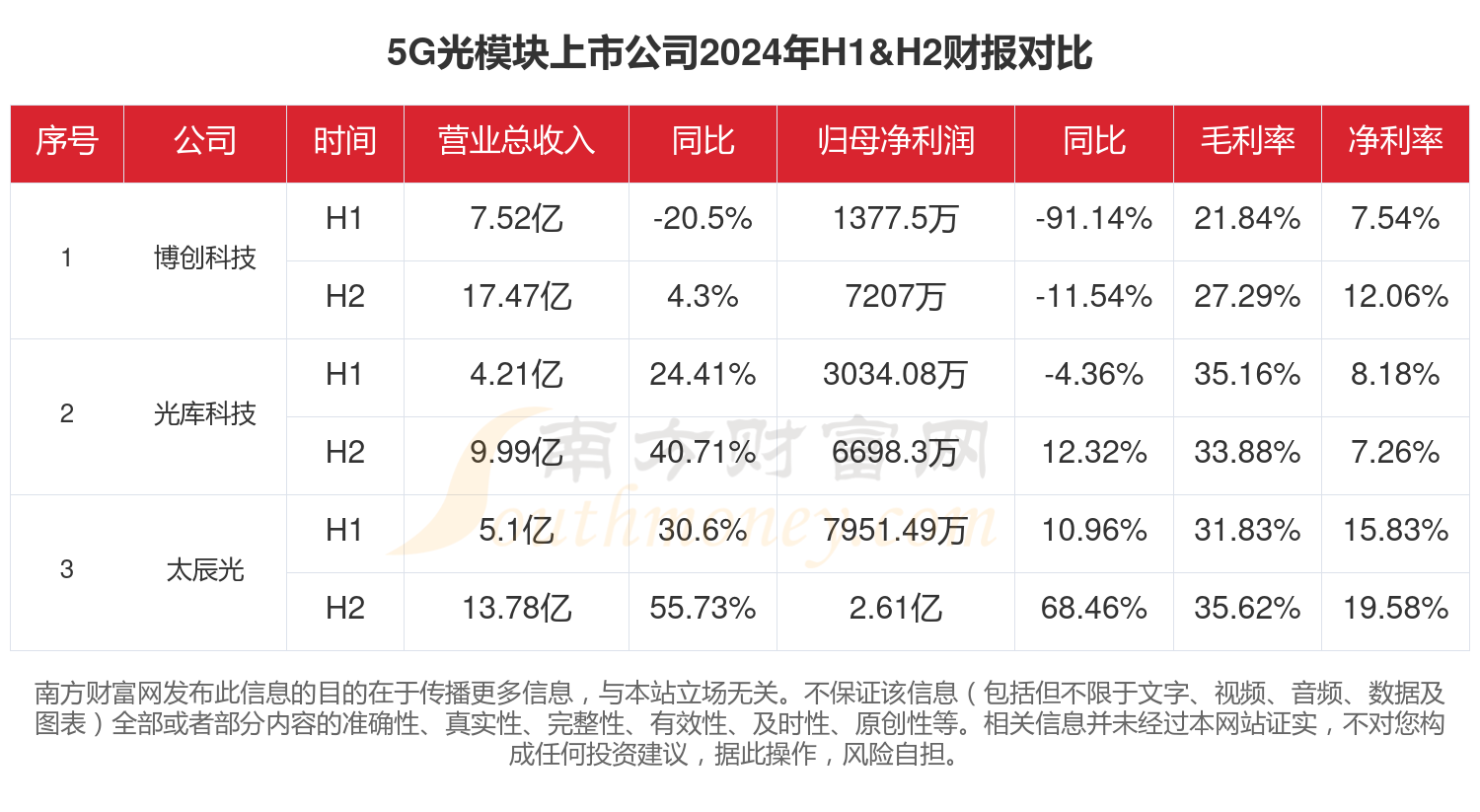 根据南方财富网概念查询工具数据统计,A股11家5G光模块相关上市公司已发布2024年全年财报。2024年全年大家都过得怎么样?一起来看看吧。