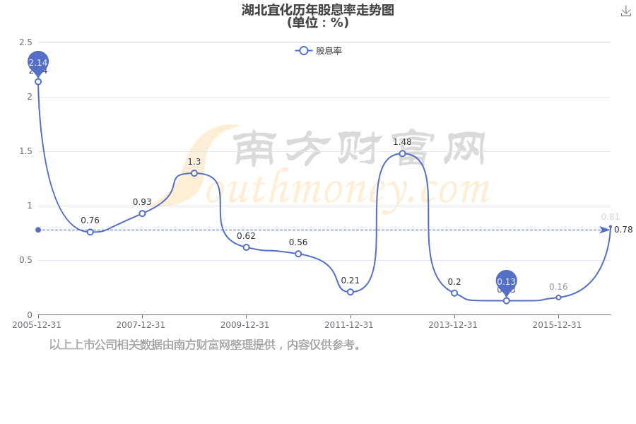 近年湖北宜化年度股息率走势如下图:
