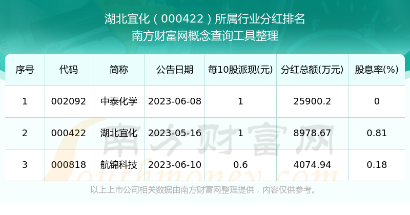 二、湖北宜化000422行业分红排名