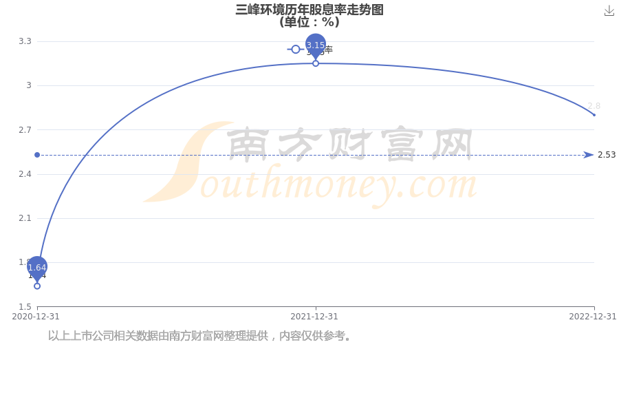近年三峰环境分红情况如下表所示: