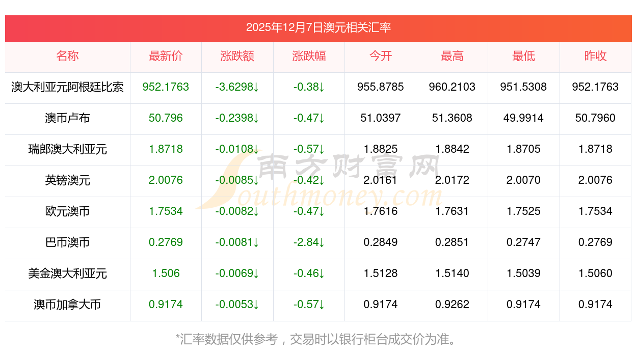 根据2025年12月7日汇率计算,AUD兑换NZD汇率最新价1.149700:今开价1.1473,昨收价1.1497,最高价1.1507,最低价1.1445。
