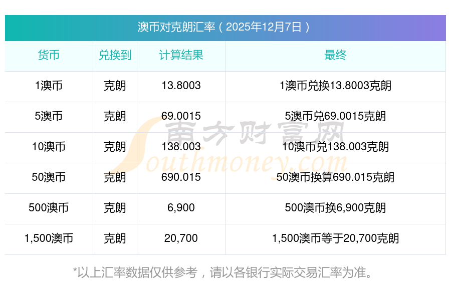 今天50澳币兑换克朗的最新汇率 附查询方法2025-12-7