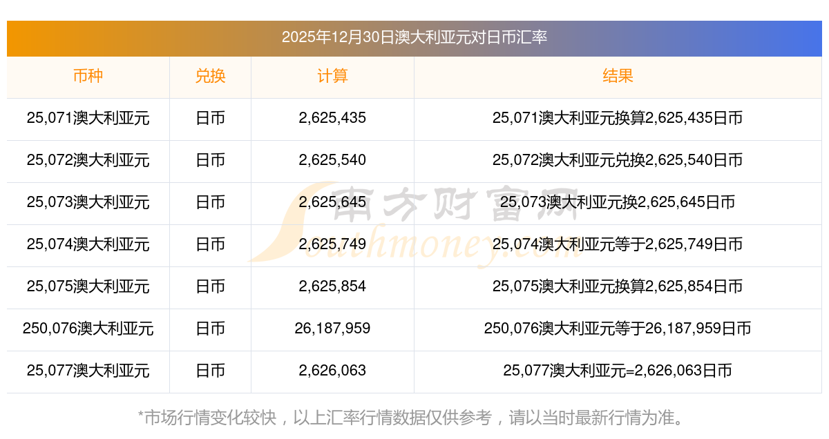 澳元今日汇率,澳元兑换日元的汇率是多少?12月30日