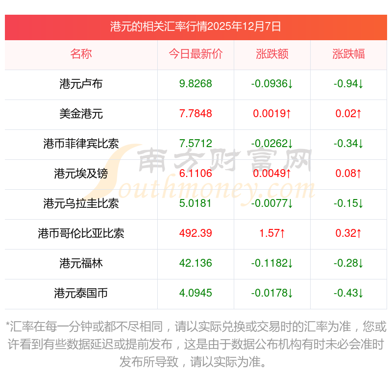 根据2025年12月7日汇率计算,HKD兑换FJD汇率最新价0.290440:今日开价0.2918,昨日收价0.2904,最高价0.2961,最低价0.2898。