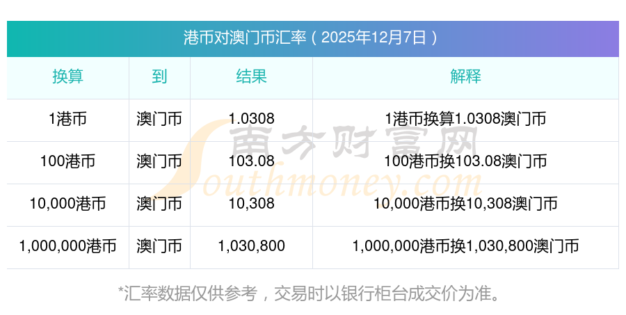 今8港币兑换澳门币的汇率是多少 外汇如何查询2025/12/7