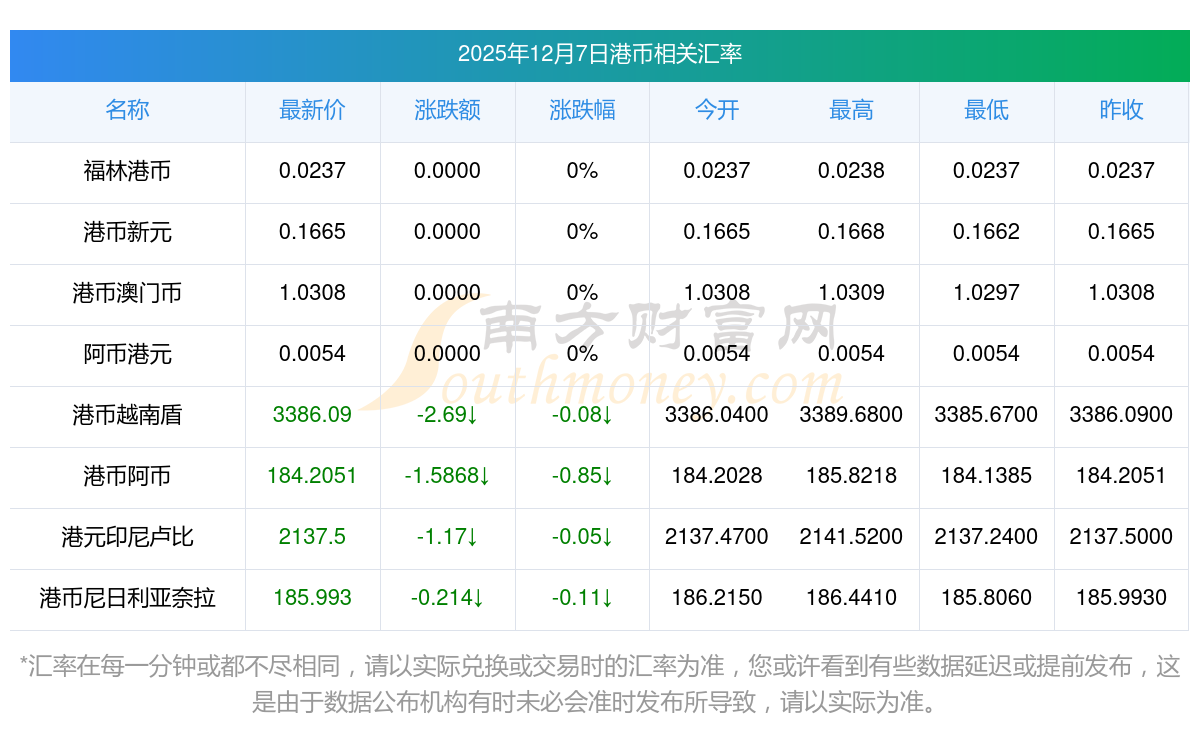 南方财富网为您提供港币对澳门币汇率最新价格详情。