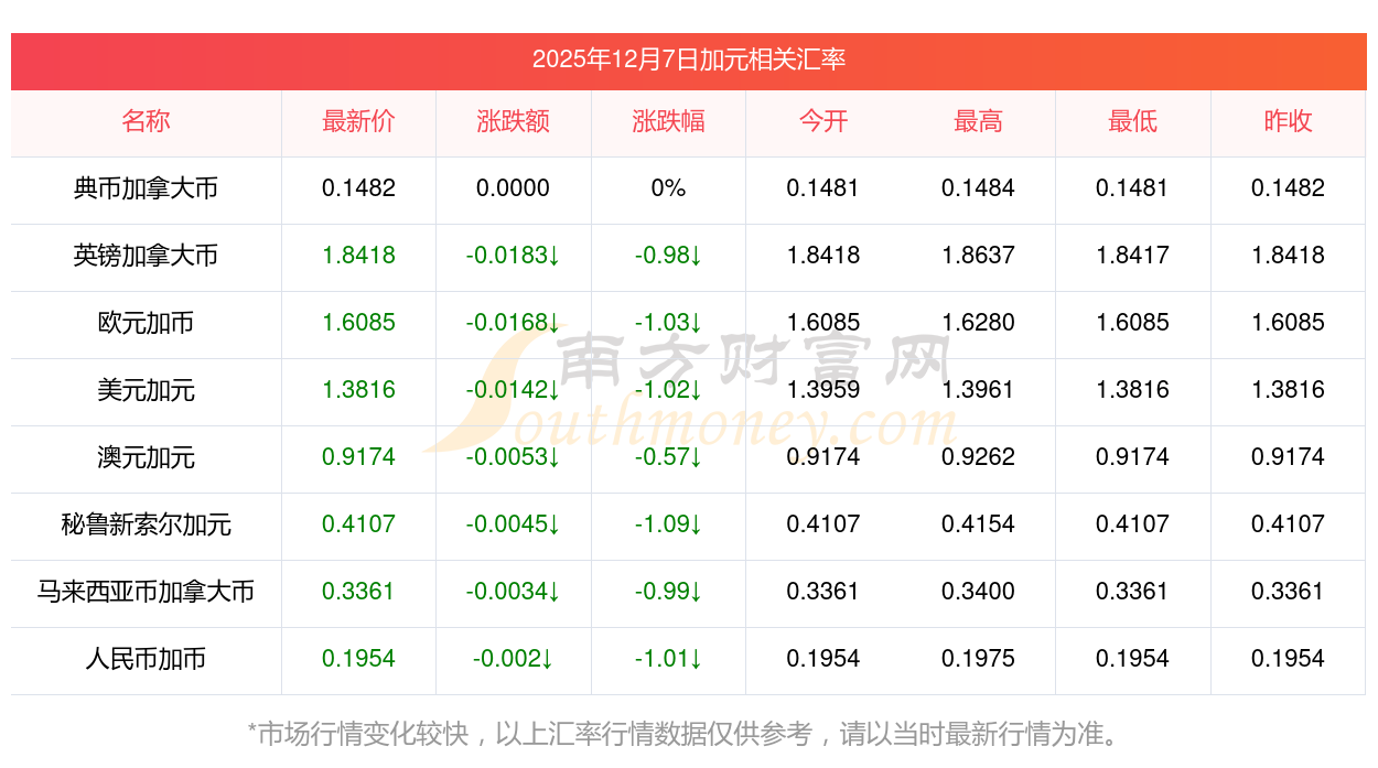 根据2025年12月7日汇率,加元兑换斐济刀汇率最新价1.636523,今开价1.6257,昨收价1.6361,最高价1.6516,最低价1.6176。