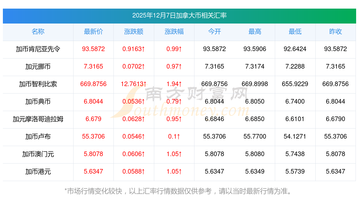 根据2025年12月7日汇率,加拿大币兑换人民币汇率最新价5.117500,今开价5.1175,昨收价5.1175,最高价5.1177,最低价5.0653。