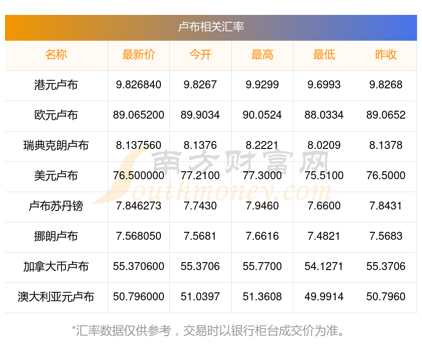 南方财富网为您提供卢布对瑞典克朗汇率最新价格详情。