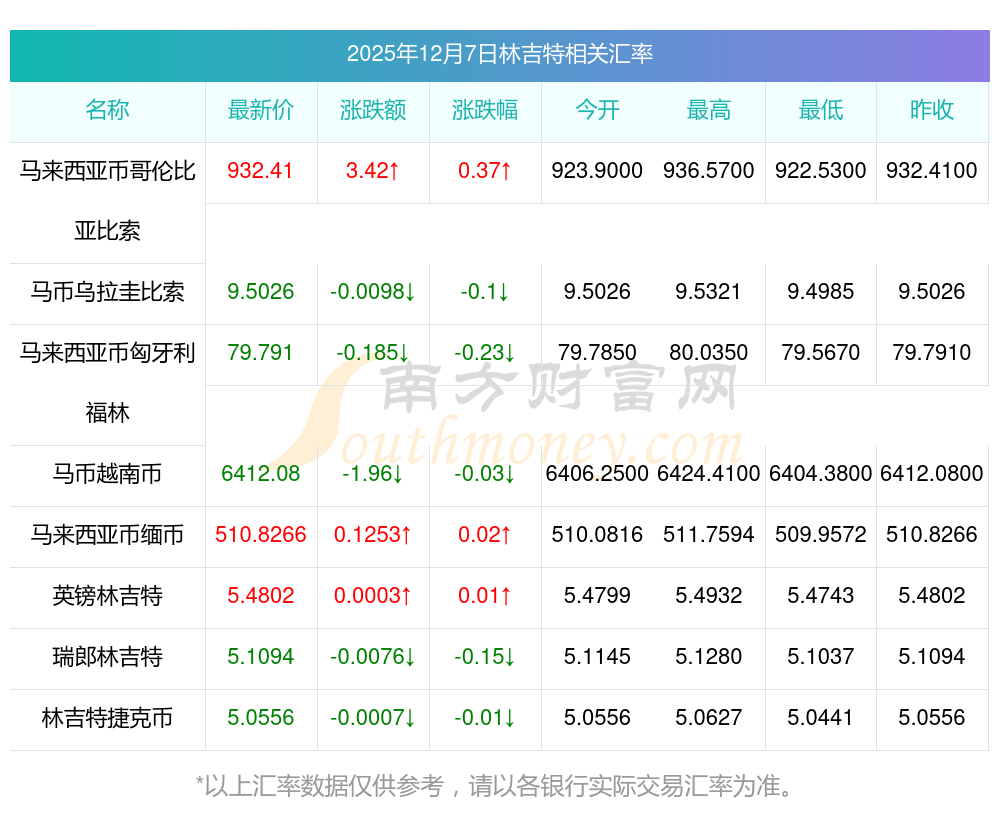 2025年12月7日林吉特相关汇率查询