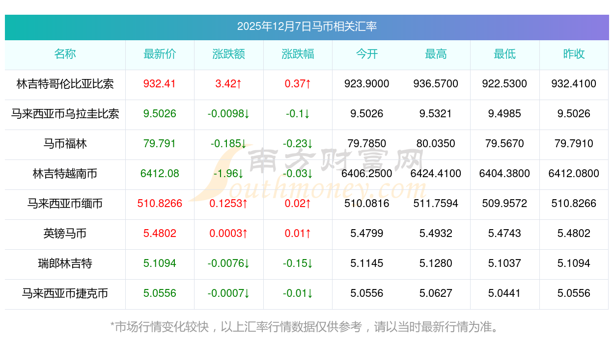 根据2025年12月7日汇率,马币兑换挪币汇率最新价2.458880,今开价2.4589,昨收价2.4589,最高价2.4623,最低价2.4505。