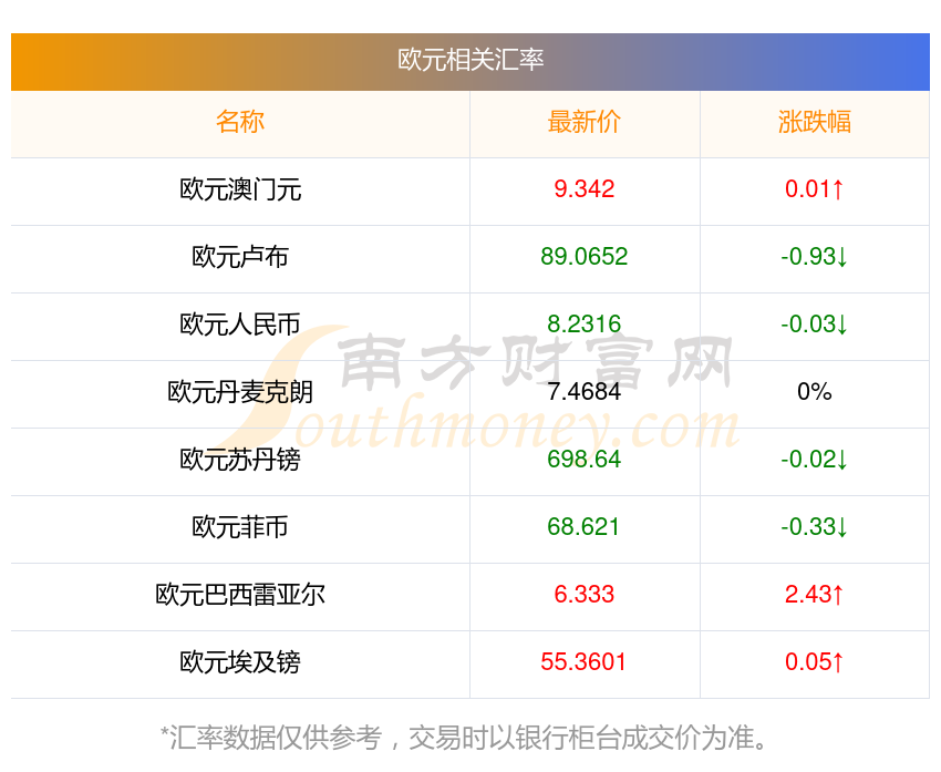 南方财富网为您提供欧元对利币汇率最新价格详情。