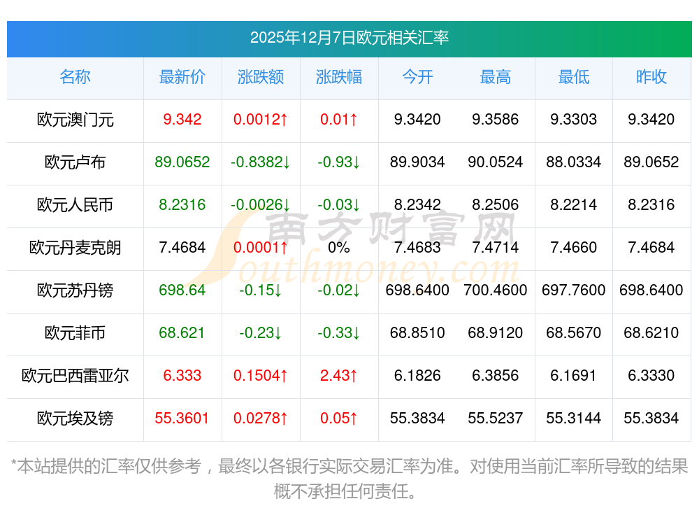 根据2025年12月7日汇率,欧元兑换摩洛哥迪拉姆汇率最新10.743300,今开10.7524,昨收10.7433,最高10.7781,最低10.7347。