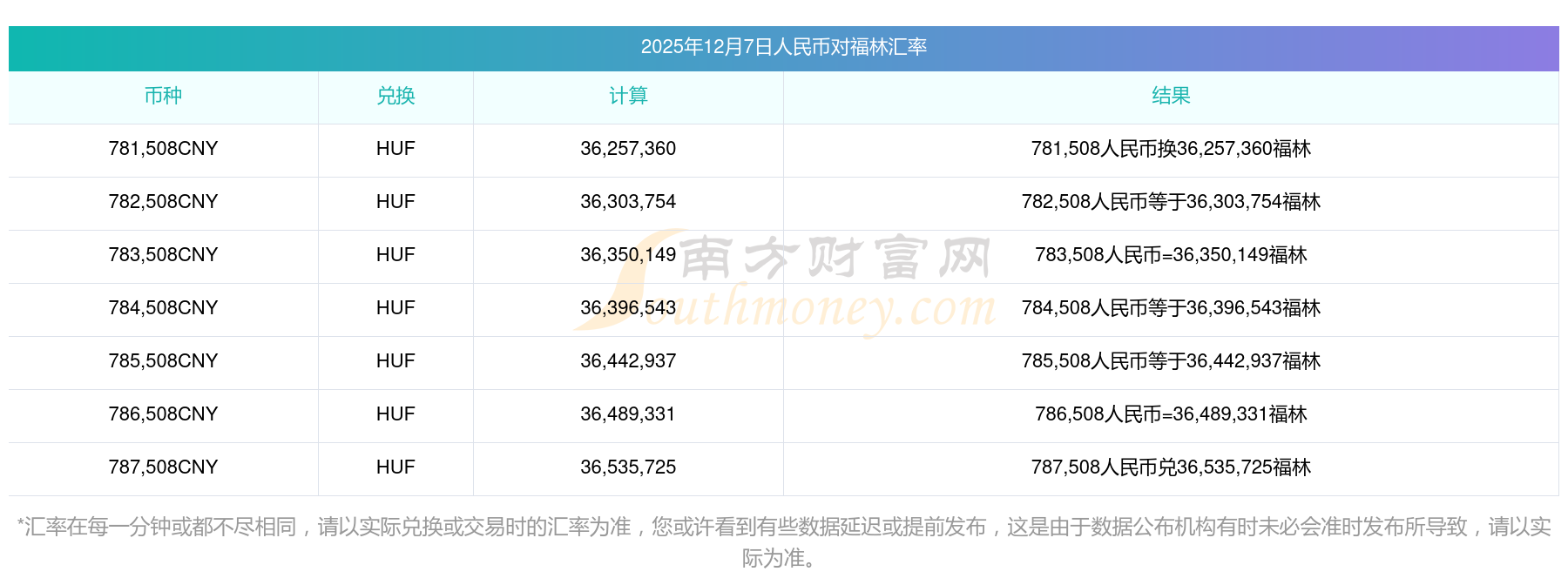 南方财富网为您提供人民币对福林汇率最新价格详情。