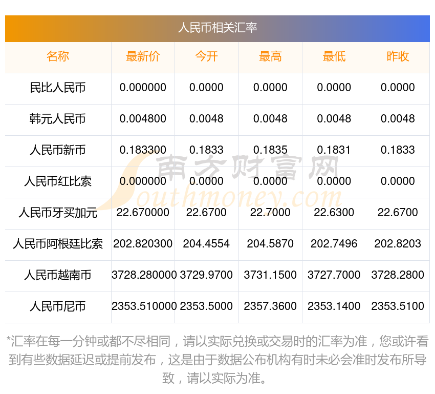 南方财富网为您提供人民币对新台币汇率最新价格详情。