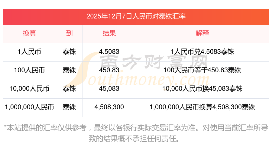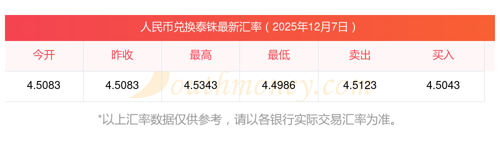 最新今天2025年12月7日人民币兑换泰铢汇率