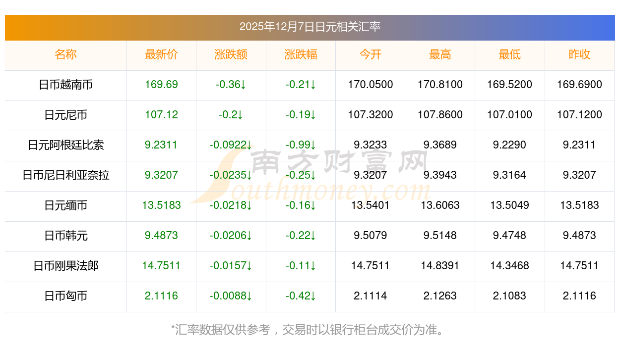 每日汇率查询 | 日元换南非兰特汇率价如何查询? 12-07