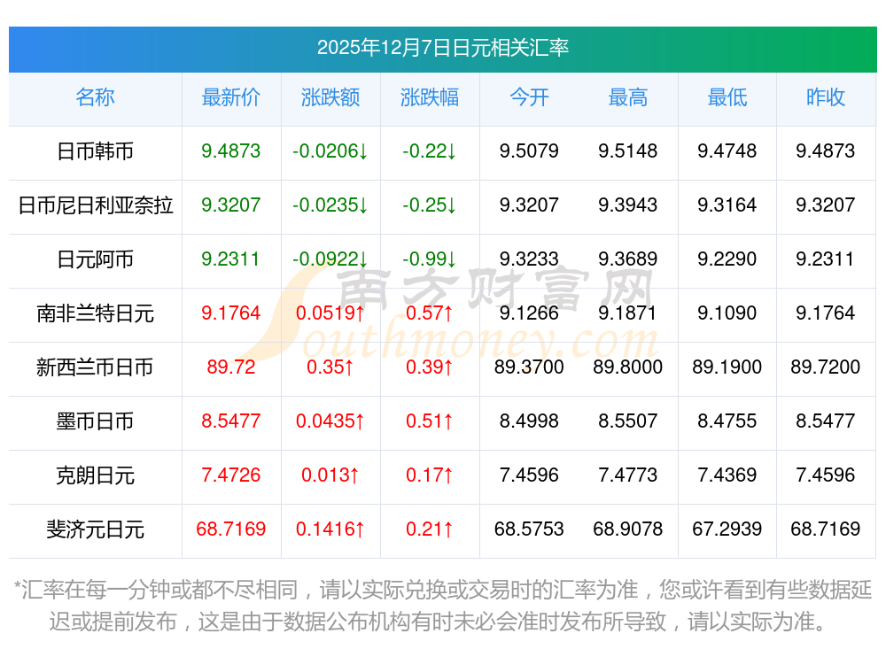 2025年12月7日日元兑换欧元最新汇率:0.005530,今开:0.0055,昨收:0.0055,最高:0.0056,最低:0.0055。
