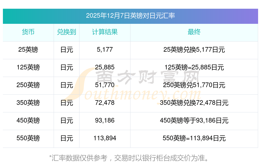 英镑对日元开盘价?今天140英镑兑日元汇率又是多少?2025-12-07