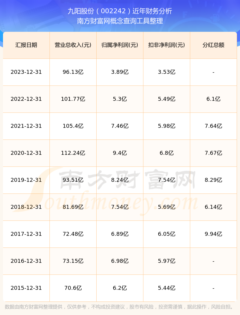 九阳股份财务分析如下图: