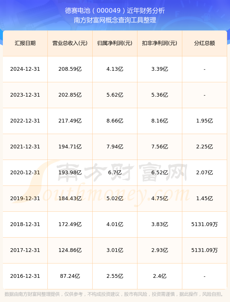 2024年公司总营收208.59亿,同比增长2.83%;净利润4.13亿,同比增长-26.49%;销售毛利率10.38%。