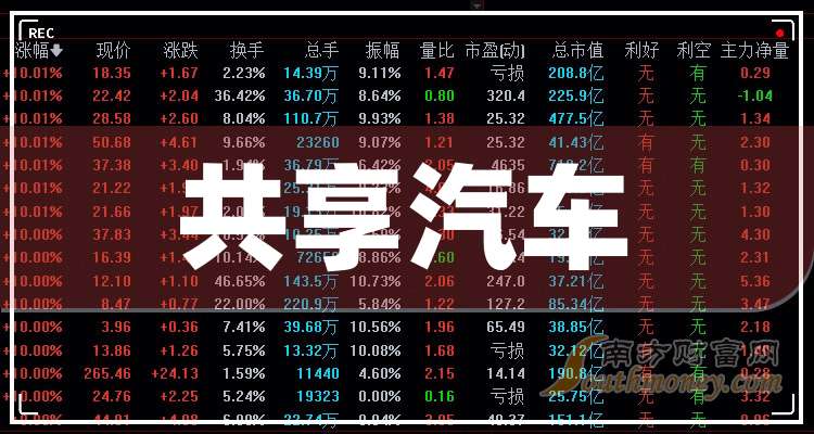 共享汽车上市公司龙头有哪些?据南方财富网概念查询工具数据显示,共享汽车上市公司龙头有: