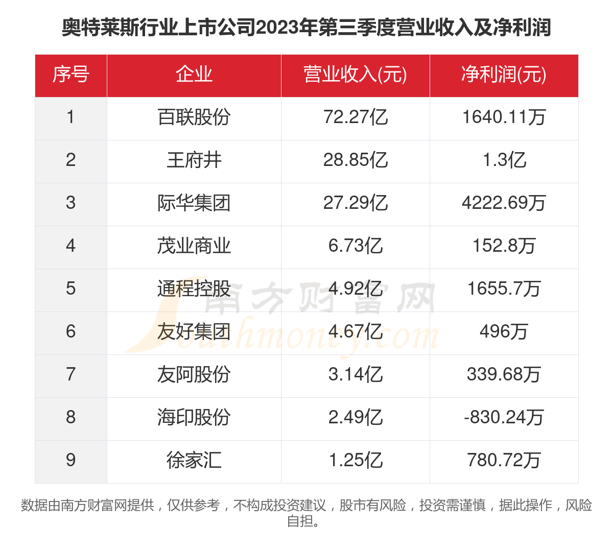 本文统计了A股10家奥特莱斯行业上市公司的2023年前三季度的营业收入、净利润,2023年第三季度的营业收入、净利润,以及最新的市值情况。