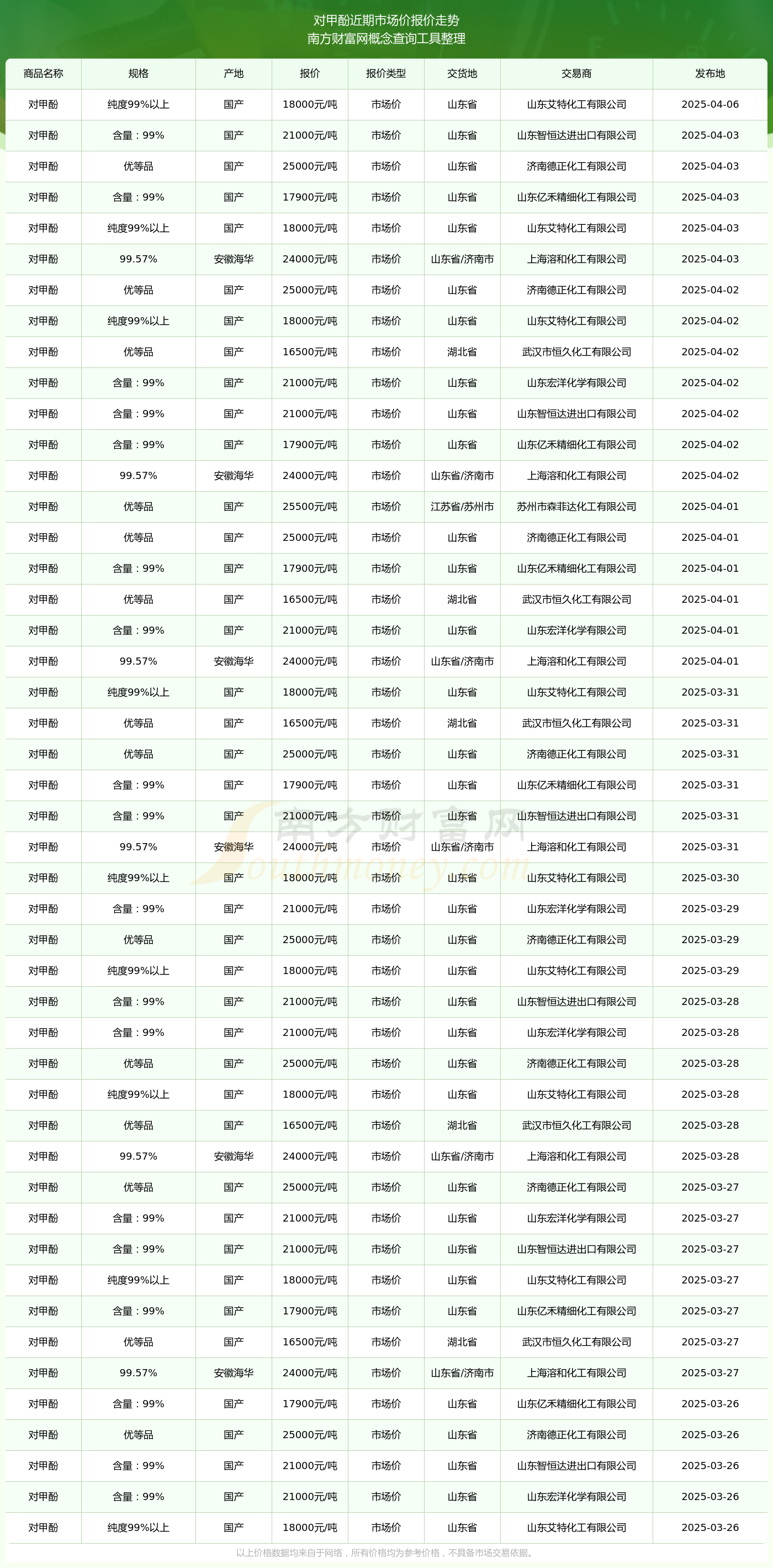 2025年4月6日对甲酚市场价报价查询及近期市场价报价走势