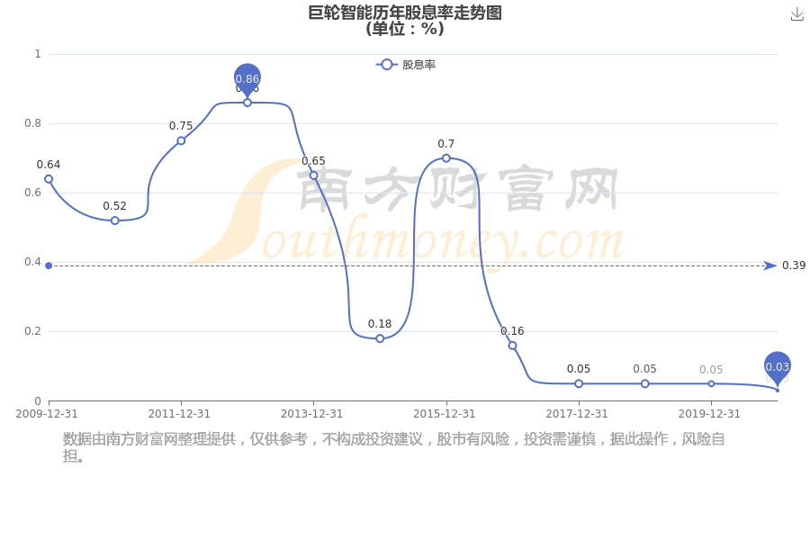 巨轮智能历年股息率走势如下图: