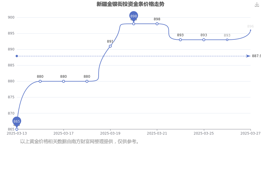今日新疆金银街投资金条价格是896.0元/克。