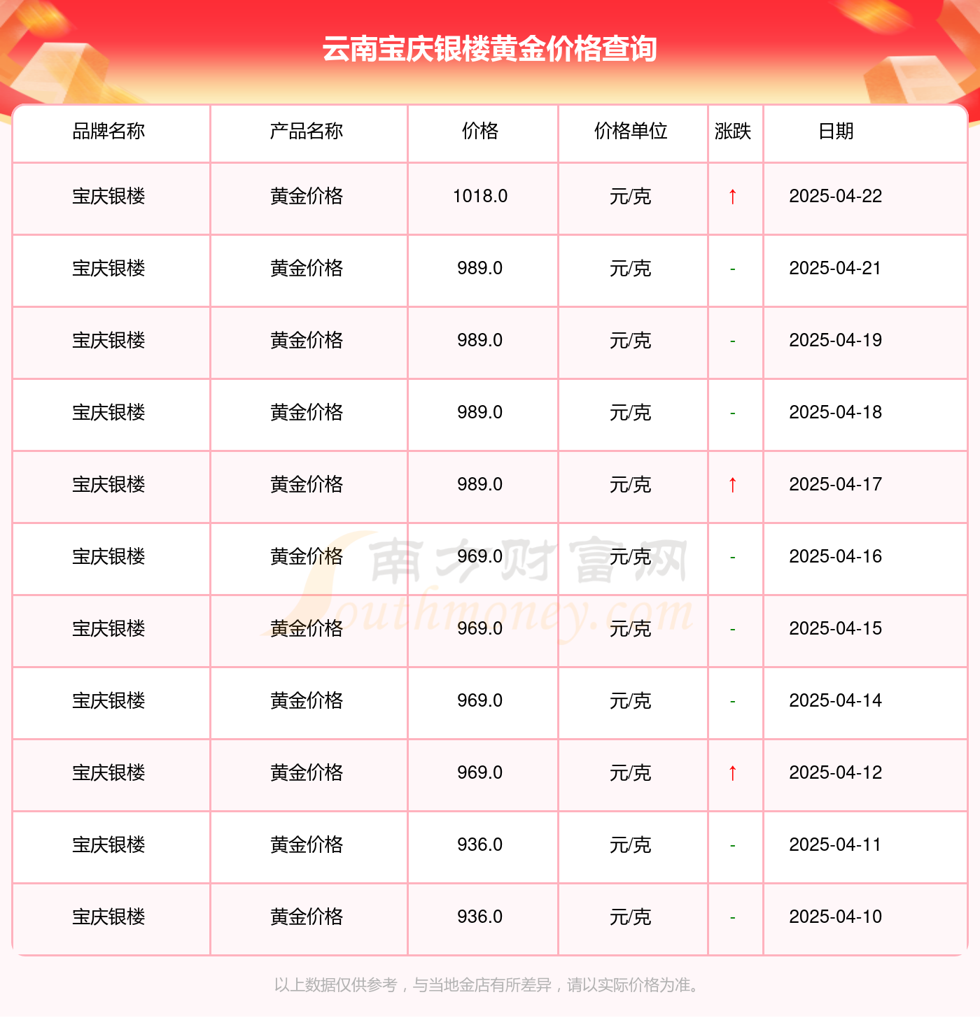 2025年4月22日云南宝庆银楼黄金价格现在一克多少钱?