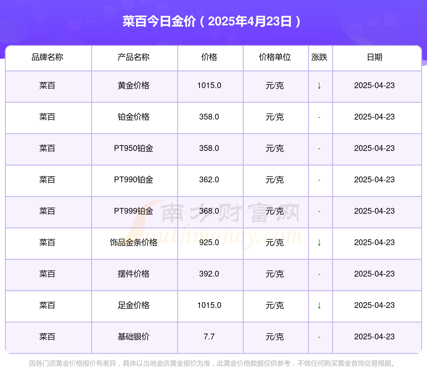 菜百黄金价格_今日报价查询(2025年4月23日)