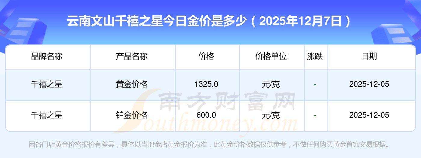 云南文山千禧之星金价今日价格最新_云南文山千禧之星黄金多少钱一克2025年12月7日,随小编来了解一下详情。
