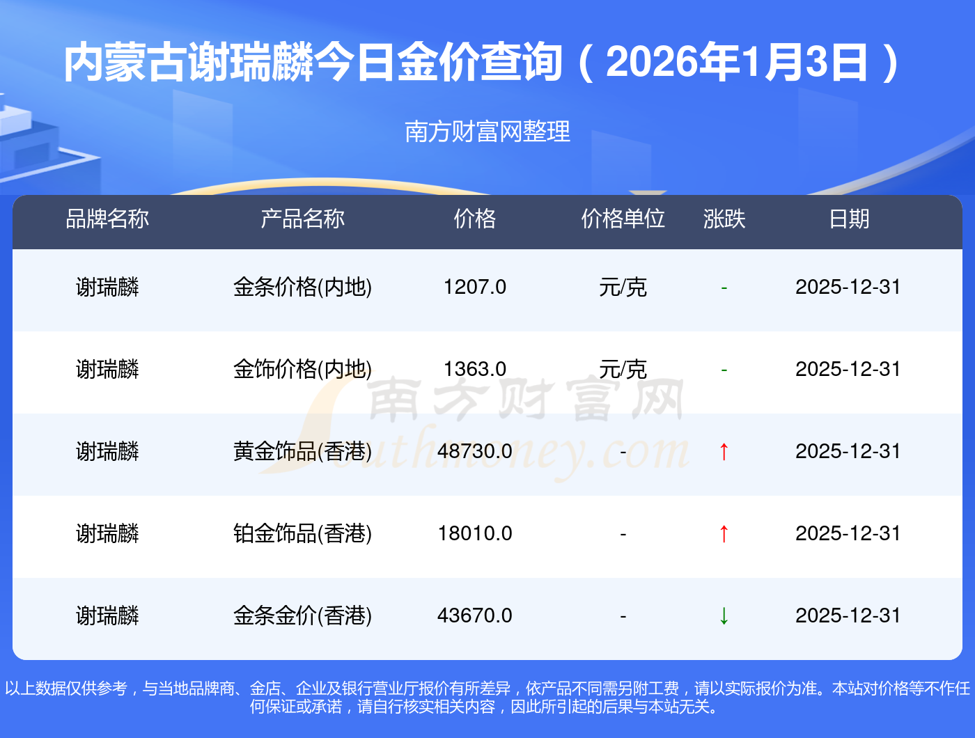 2026年1月3日谢瑞麟黄金价格多少钱一克_今日内蒙古谢瑞麟金价表一览