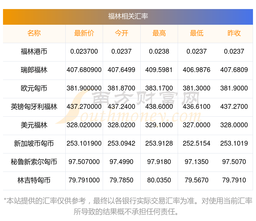 南方财富网为您提供福林对克朗汇率最新价格详情。