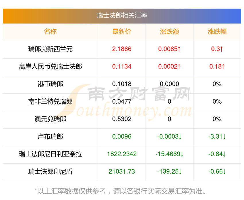 2025年12月31日瑞士法郎相关汇率查询