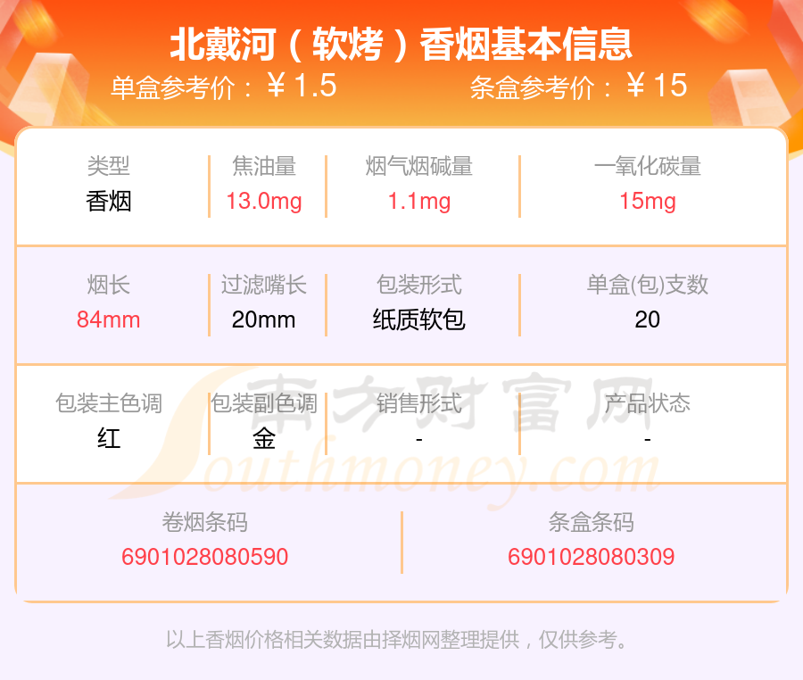 以上香烟价格相关数据仅供参考,温馨提示,吸烟有害健康。