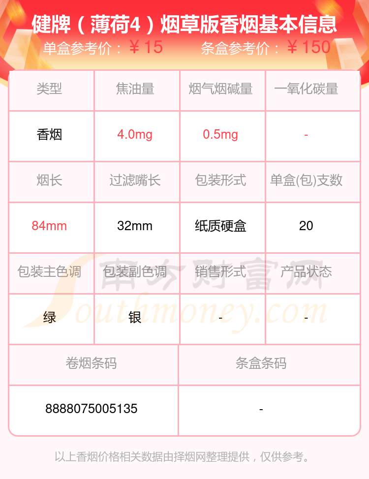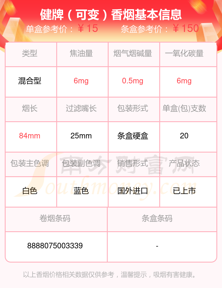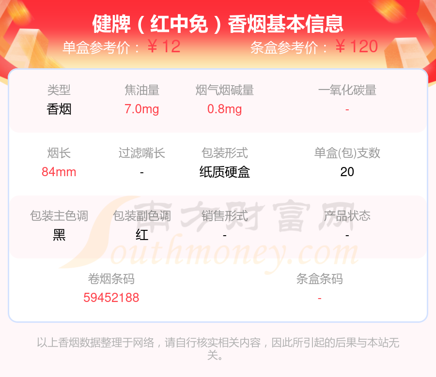 以上香烟数据整理于网络,请自行核实相关内容,因此所引起的后果与本站无关。