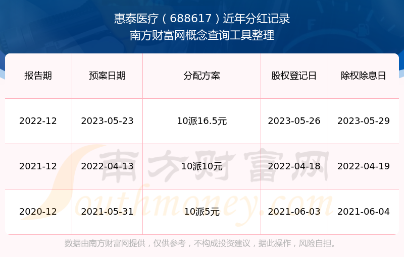 二、惠泰医疗688617行业分红排名