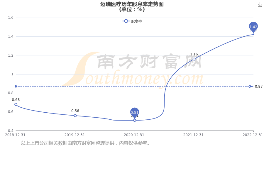 按照南方财富网趋势选股系统统计,迈瑞医疗所属行业为医疗器械行业,医疗器械行业分红排名情况如下表: