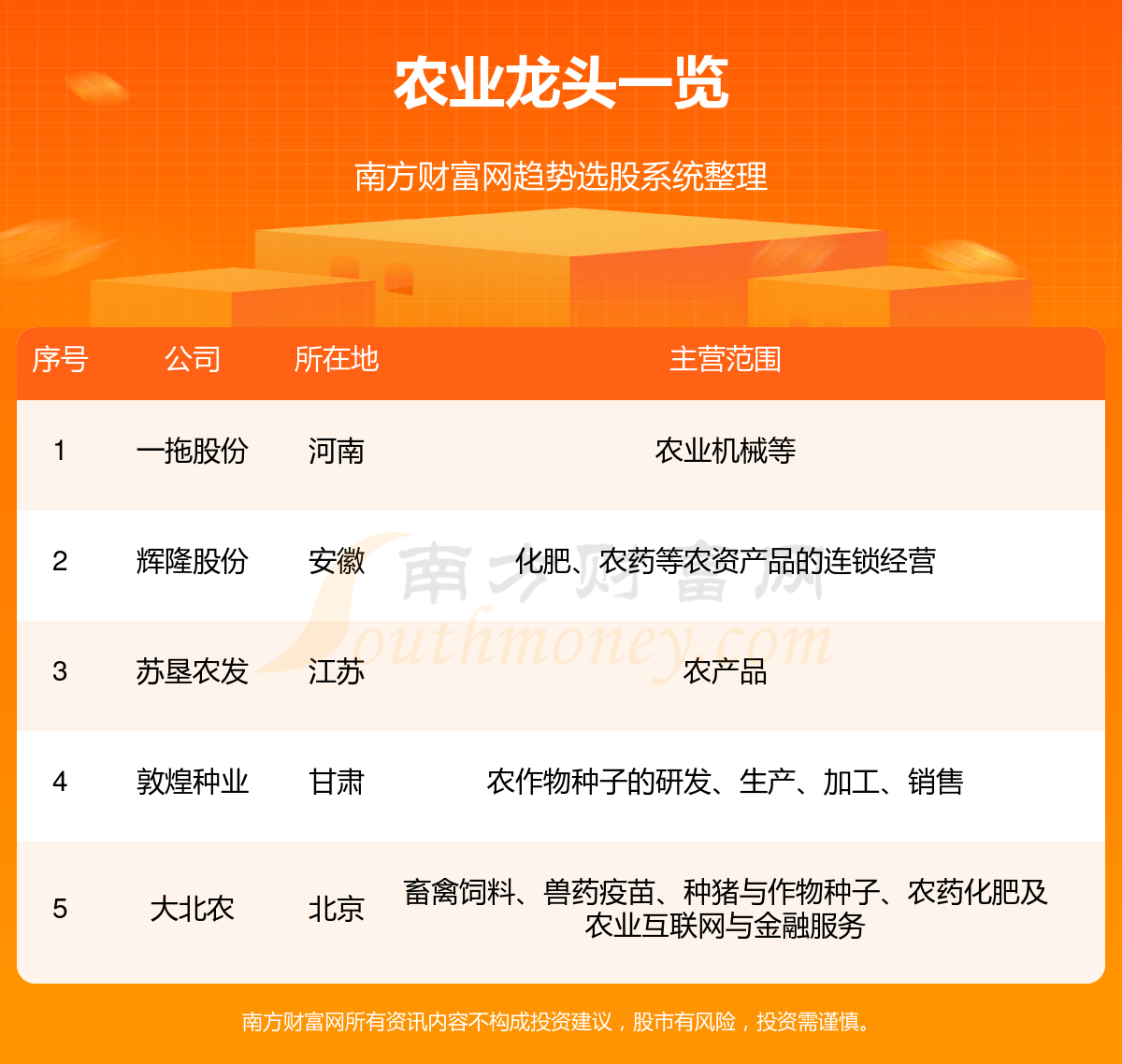 一、农业龙头股一览